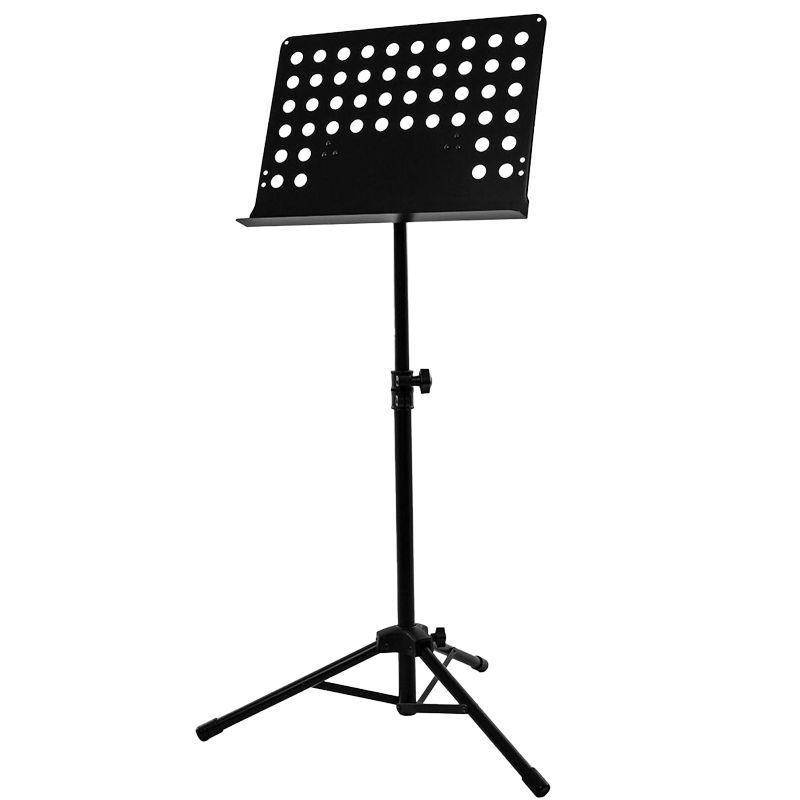 A sturdy concert style music stand with a lightweight desk.