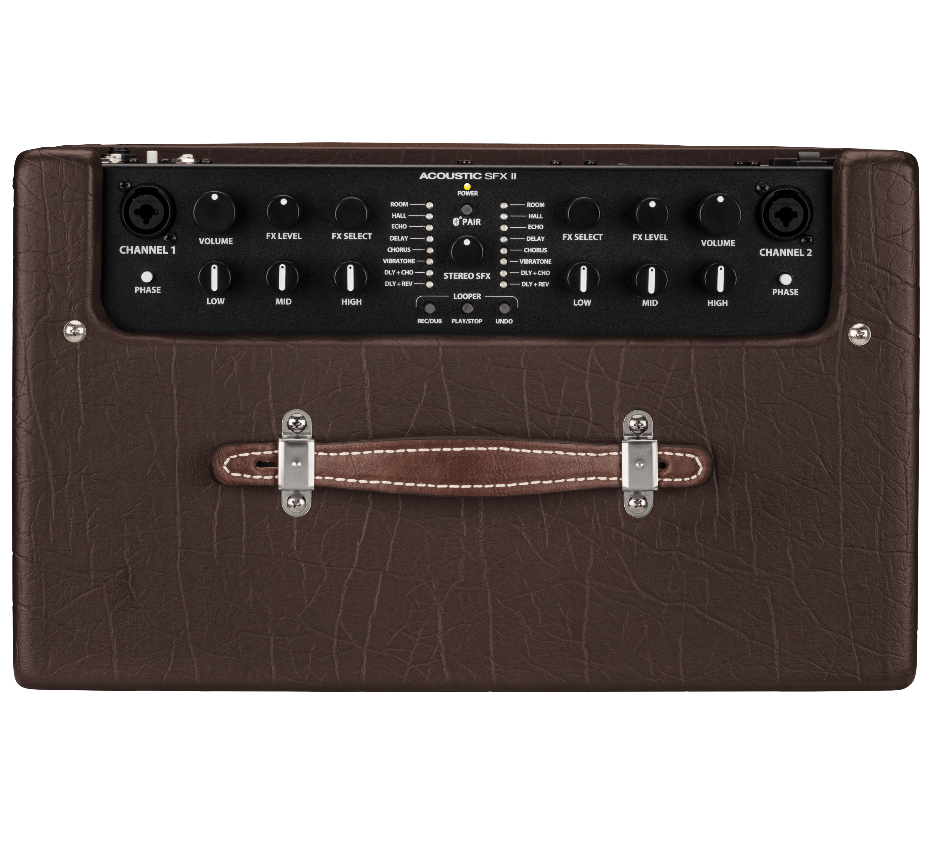 Control Panel : Channels 1 and 2: Volume, Low EQ, Mid EQ, High EQ, Effects Level, Effects Select, Phase Switch (Separate Controls For Each Channel); Looper Controls: Rec/Dub, Play/Stop, Undo; Bluetooth® Pair Button