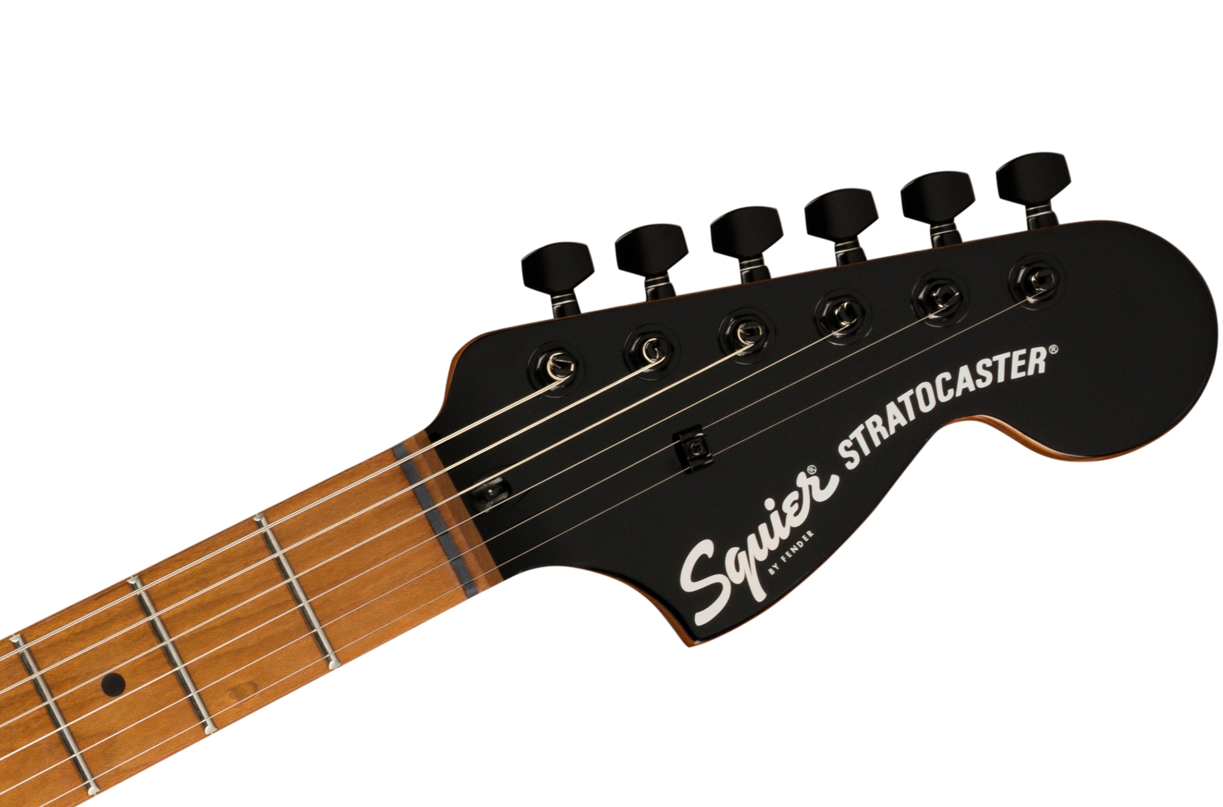 The Squier® Contemporary Stratocaster® Special brings modern features and bold aesthetics to an iconic Fender platform to satisfy today’s most discerning and daring players. At the heart of this guitar is a set of Squier SQR™ alnico single-coil pickups positioned in a “special” configuration with the middle pickup near the bridge pickup for a unique variety of dynamically responsive settings. The roasted maple neck was chosen for its optimal tone and stability, and a sculpted heel design allows for improved access all the way to the 22nd fret. High-performance components round out the feature list and include a 2-point tremolo bridge for superior feel during bends, and a set of sealed-gear tuning machines with split shafts for smooth tuning action and easy restringing. Eye-catching styling cues include stealthy black hardware and a sleek painted headstock with chrome logos for a premium look.