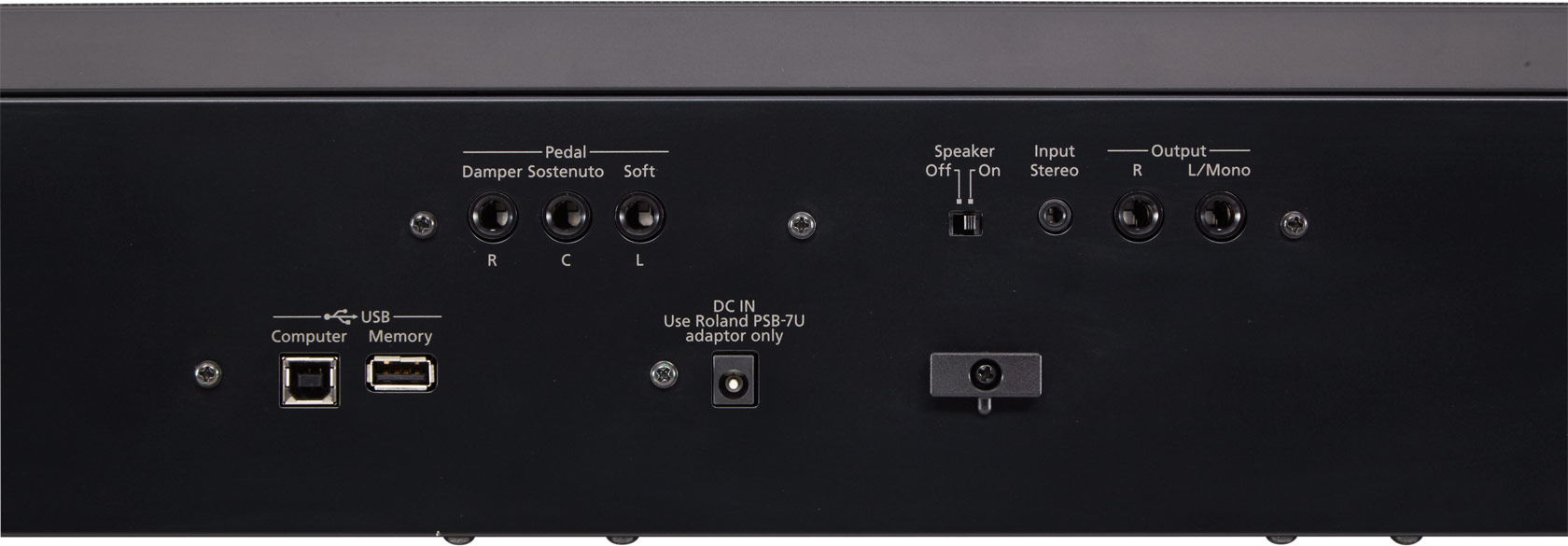 Pedal (Damper/R, Sostenuto/C *1, Soft/L *1) jacks: TRS 1/4-inch phone type
