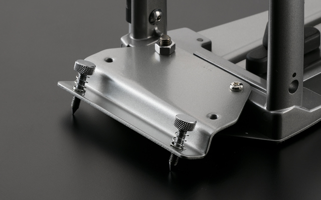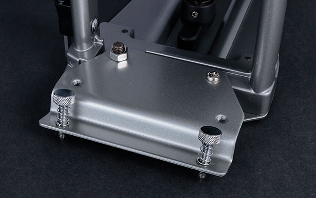 To keep left-side double pedals from walking, a special stabilizer is mounted to the outside frame. This augments the stability of the floor anchor bolts.