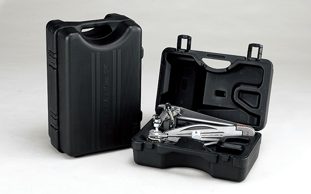 Tama eliminated another source of friction by replacing the traditional nylon rocker cam with the Speedo-Ring, a rocker cam with a high quality built-in ball bearing rocker. The Quick-Hook not only allows for easy set up and tear down but provides a compact pedal that you can place in the hard case without taking off the beater.